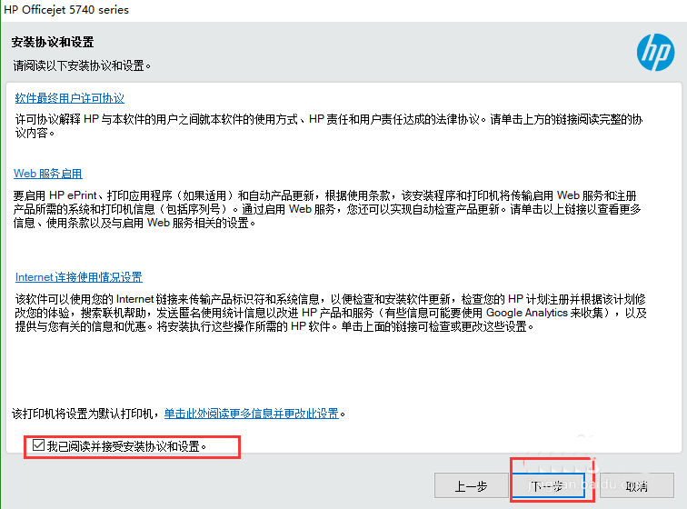 11、再次點(diǎn)擊下一步按鈕,到此為止惠普5470打印機(jī)驅(qū)動(dòng)程序,就在線(xiàn)安裝完成了。