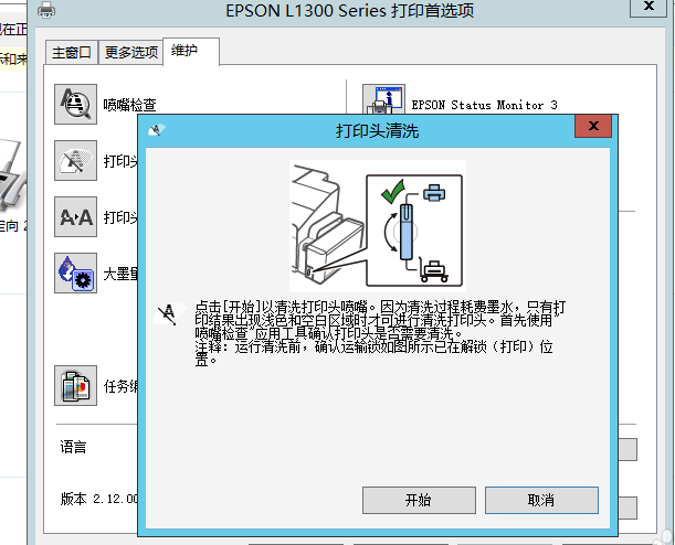 5、然后點擊開始。打印機開始自動清洗碰嘴。
