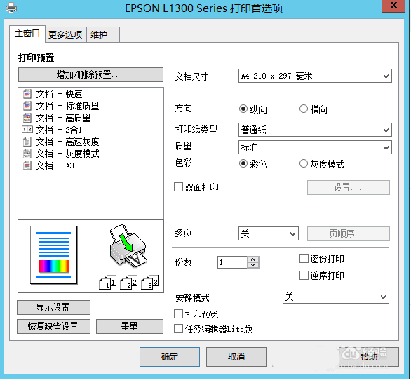 1、家里有臺愛普生L1300噴墨打印機,時常用來打印些照片,由于最近工作忙,打印機放置時間太久,打印質(zhì)量變得很差。下面來給大家操作下如何清洗噴嘴。
