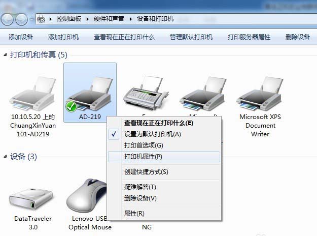 3、開始—設備和打印機—找到AD-219打印機