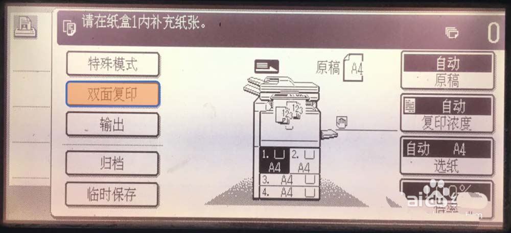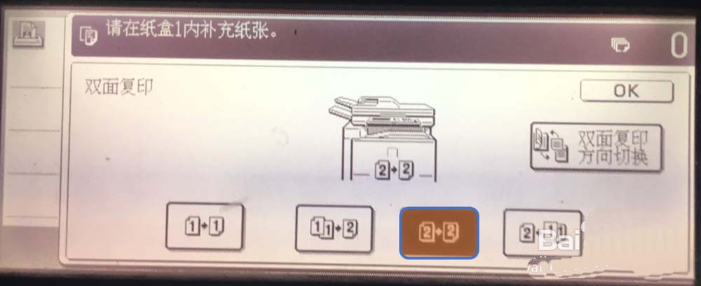 2、如需雙面復印則:點擊觸控屏的“雙面復印”選項,(單面復印可跳過第2第3步)