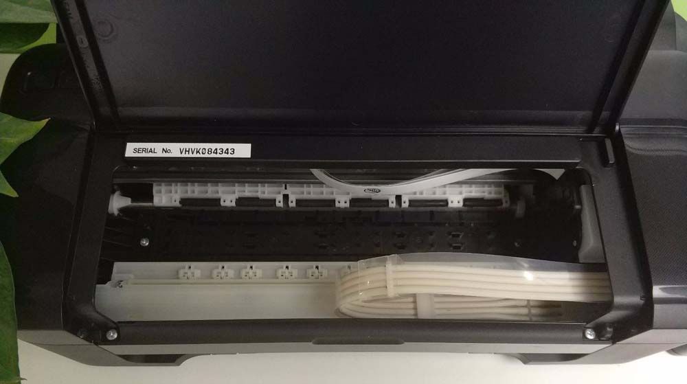 4、內(nèi)部可以看到連供的墨水管子,由于是官方設(shè)計(jì)的,所以不用擔(dān)心傳統(tǒng)改裝連供的毛病。(傳統(tǒng)改裝毛病:打印機(jī)一段時(shí)間不用墨水就會(huì)堵住,連供系統(tǒng)采用雙面膠粘合,時(shí)間一久就會(huì)脫落)