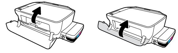 3、開啟惠普連供打印一體機5820打印機后,打開外艙門,然后打開打印頭艙門。把打印頭筆架移動到打印機的中央位置。輕輕地按下藍色打印頭的筆架閂鎖。藍色打印頭的筆架閂鎖將打開。