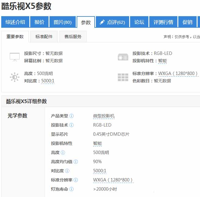 盲目追求高亮度也是投影機選購的一大忌。其實追根溯源跟廠商的宣傳方式也有關?,F在所有的投影機幾乎都在宣傳亮度,從以前的2000流明到現在的3000流明,這容易使那些不了解投影機的人造成一種誤解,亮度越高的投影機性能越好。事實上呢?影響投影機投射畫面質量的因素有很多,亮度只是其中因素之一,對比度,分辨率,成像方式等都影響投影畫面的質量。而亮度越高只能說明,即使在光線相對強烈的地方也能保證投射畫面的亮度。一般來說在室內光線較暗的環境下,2000流明都綽綽有余,那些3000流明甚至是更高亮度的投影機完全沒有用武之地,而且除非使用環境的面積購大,不然距離太近觀看高亮度方面畫面,反而會非常不舒適,甚至頭暈目眩,嚴重的會傷害眼睛。所以盲目追求高亮度并不可取。此外,現在投影機行業還流行亮度虛標,不熟悉產品的用戶會因為追求高亮而上了JS的當。我買的酷樂視x5投影儀亮度還不錯,非常清晰了。