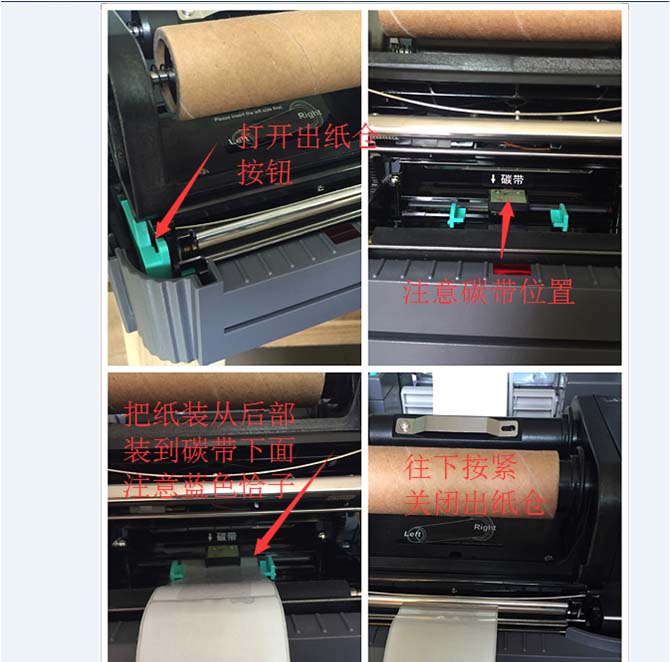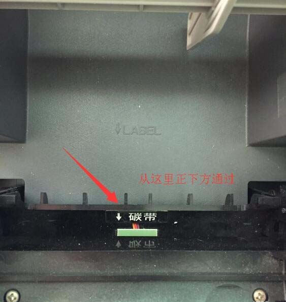 3、要注意的是,熱敏打印機的熱敏打印紙要從機器內(nèi)部最下方通過,即在“碳帶”兩個字所在的部件正下方通過