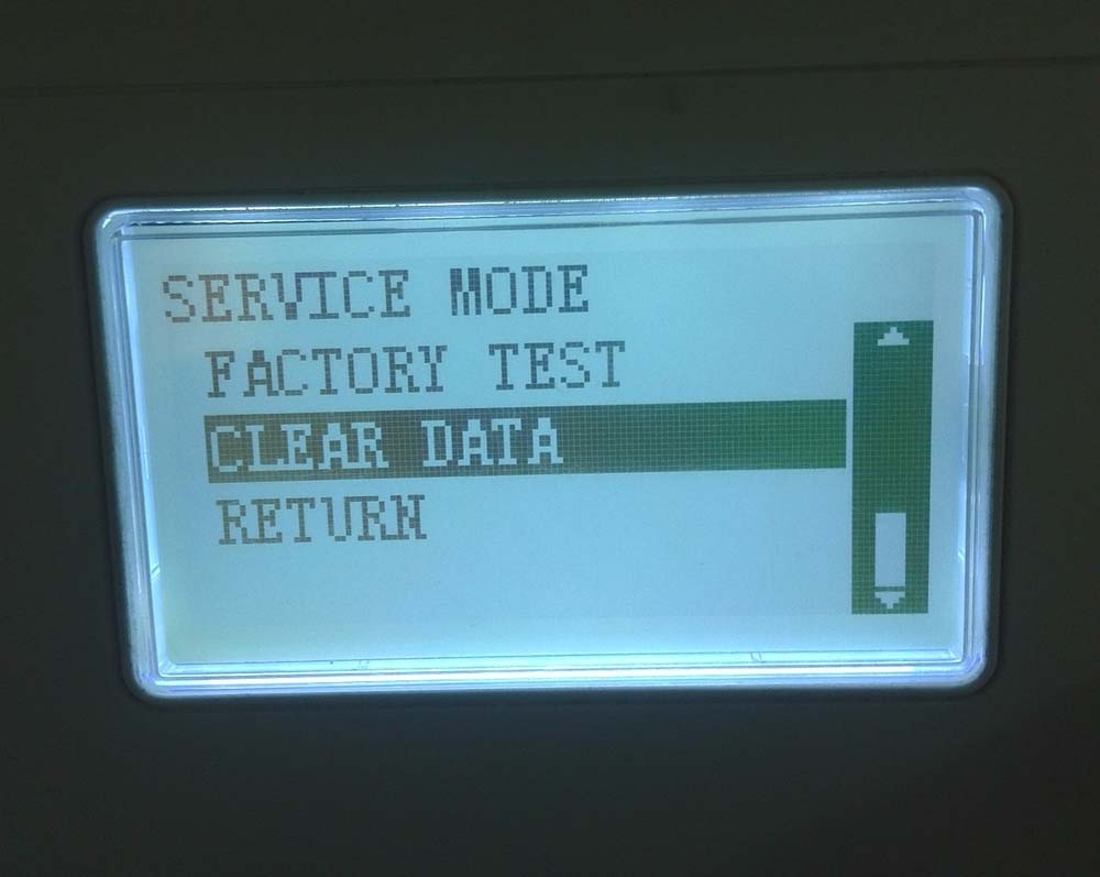 1、按效用----停止-----00----停止-----01-----往下翻第10項-就是 ,首先按效用----停止-----00----停止-----01出現如下界面service mode ----向下選擇 找到clear data。