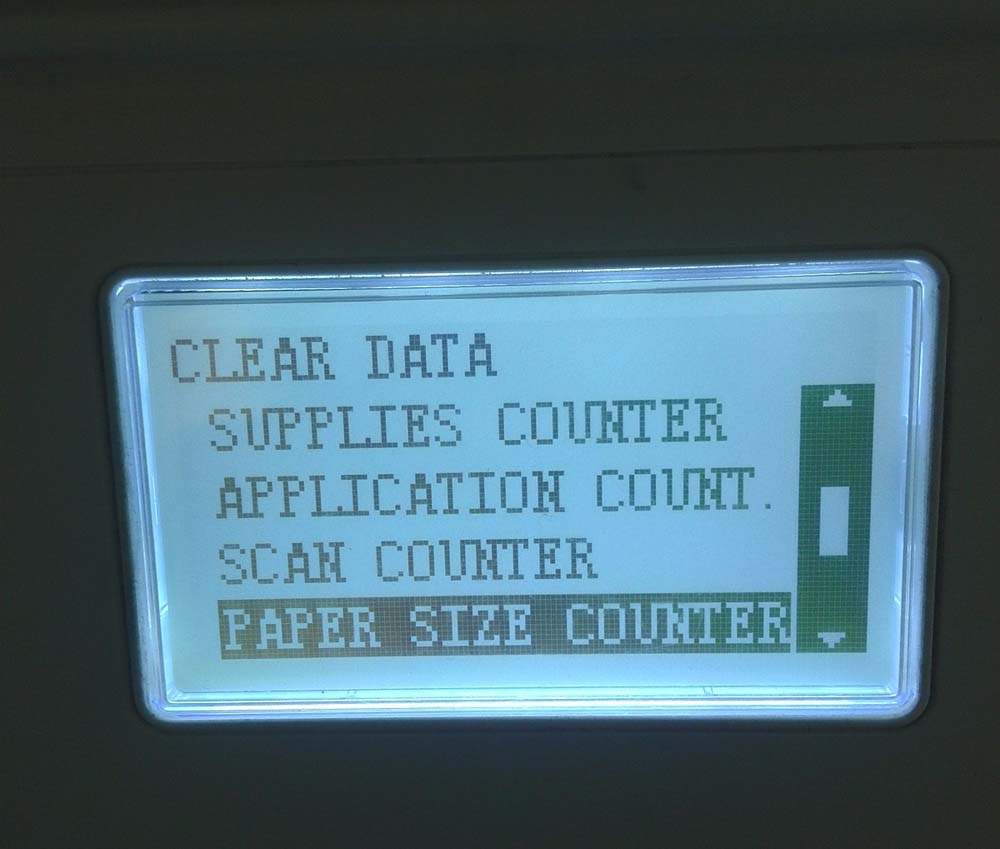 2、找到后 按ok進入clear data 選項, 找到peper size counter,按ok