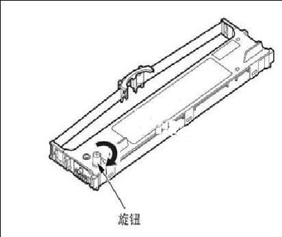 8、按順時針方向轉動旋鈕,收緊色帶。將色帶安裝到色帶導引上。邊留意上下方向邊安裝新的色帶至色帶盒內。