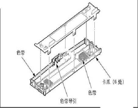 1、將色帶導引從色帶盒中取下,松開色帶盒蓋上的卡子(6 處),取下蓋子。