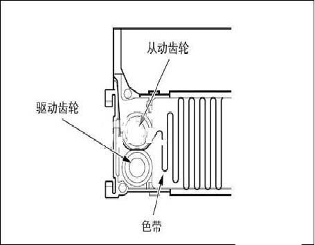 6、確認色帶盒內色帶是否折斷、扭曲或從動齒輪/驅動齒輪是否從框架浮起,然后關閉蓋子7