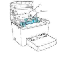 1、關閉打印機電源,按打印機左側的插銷,打開打印機蓋并將其完全向上提起,抓住碳粉盒手柄并從打印機內垂直向上拉出。
