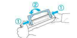 2、按下手柄左側有標記的位置,將手柄折疊起來用適當的方法處理用過的碳粉盒。