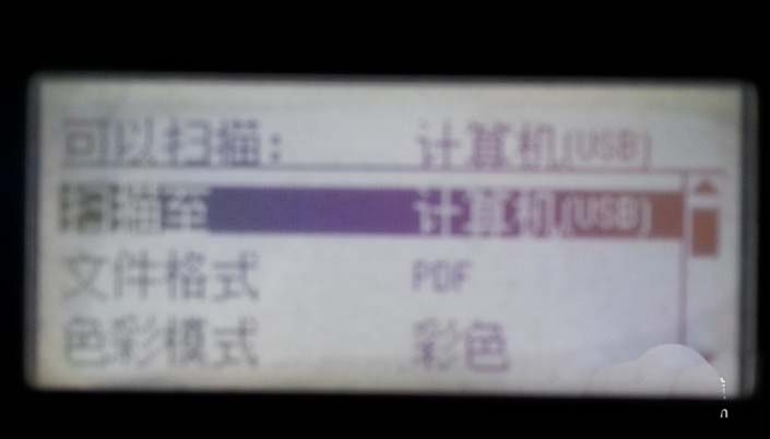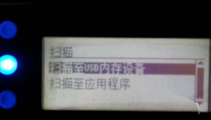 2、在選擇窗口可以看到有兩個選項,掃描至USB內存設備和掃描至應用程序。該打印機提供了USB接口支持外接設備的接入。由于掃描步驟都一樣,但是U盤存儲位置很好找故在此以掃描至應用程序為例。