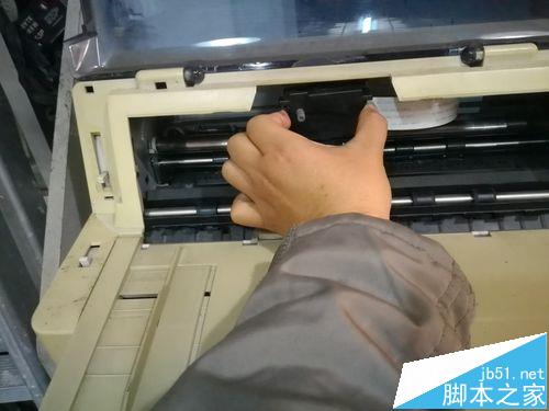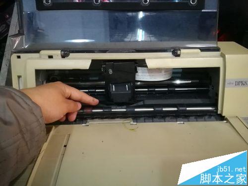 1、把DPK8300E/DPK8300E+的色帶架從打印機里拿出來。把打印頭撥到中間有個缺口那,壓住色帶架上的兩個小耳朵就可以把色帶架拿下來了。