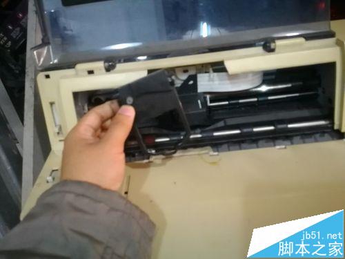 2、拆開DPK8300E/DPK8300E+色帶架,四邊是用卡扣扣起來了。小心拆開
