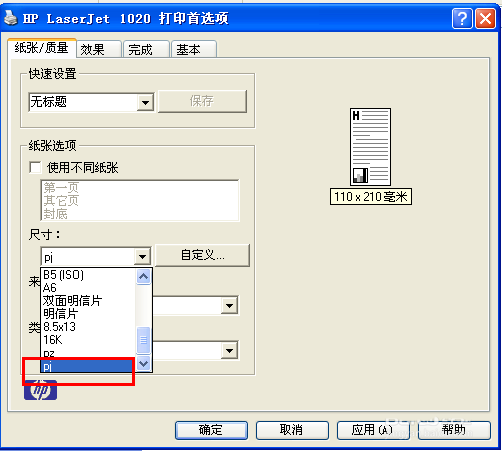 5、操作完上面步驟,激光打印機的紙張大小就設置好了,在尺寸列表中就可以看到設置好的紙張大小了。