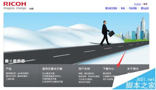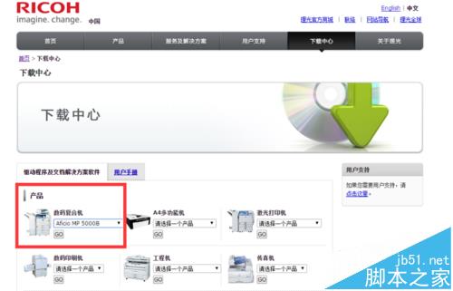 2、復印機驅動出問題我們可以進入理光中國的官網,選擇其下載中心。