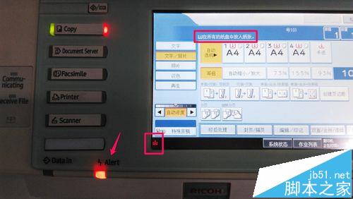 1、復印機無法打印最常見的就是紙盒中沒有打印紙了,此時RICOH理光MP5000復印機會發出警報,警示燈也會亮起來,并且有缺紙的提醒。