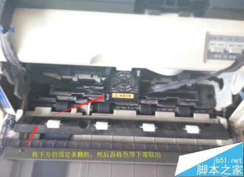 3、將下方的固定條翻轉(zhuǎn),然后將底部的色帶下部分取出。