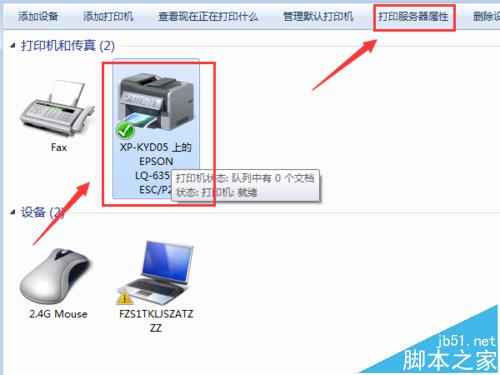 2、選擇要添加打印模板的打印機(jī),并打開“打印機(jī)服務(wù)屬性”窗體。