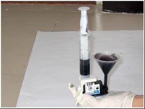 8、倒入漏斗的墨水不宜太多,20ML左右最好。操作時小心輕拿,避免墨水晃出。