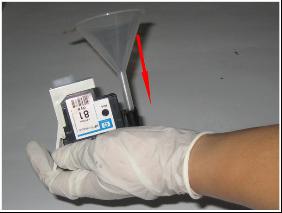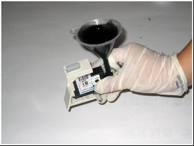 6、將與吸墨槍配套使用的漏斗插入打印頭進墨針里。