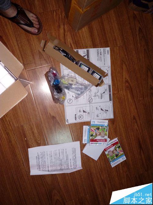 2、這一步來給大家看一下具體的零件(即都帶什么東西),使用說明書,墨盒,驅動光盤,如圖