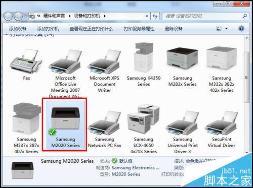 2) 找到【Samsung M2020 Series】的打印機圖標。