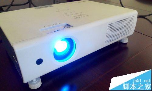 4、按下電源鍵,設備啟動,鏡頭亮起,投影出現。