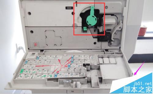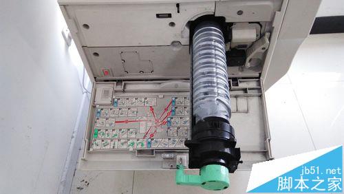 RICOH理光MP5000墨盒的位置在正面,從我標注的位置可以打開正面的蓋子,在紅色框標注的位置就是碳粉。