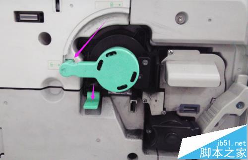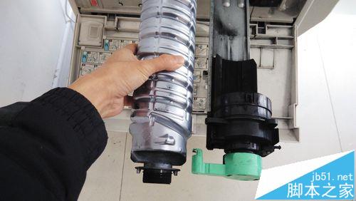 將碳粉設備的綠色前蓋旋轉到開鎖狀態,然后按下綠色杠桿,向外就可以拔出碳粉盒了,這時就可以輕松的添加或更換碳粉了。