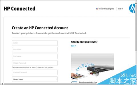 (2)如果您要注冊 HP Connected 賬戶,請填寫表格,然后按照屏幕上的說明操作。 有關 HP Connected 的更多信息,請訪問 將打印機與 HP Connected 配合使用。
