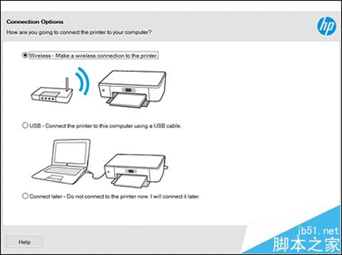4、在“連接選項”界面上,選擇 “無線 - 采用無線方式連接到打印機”,然后點擊 “下一步”。