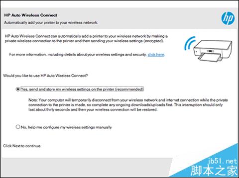 (1)“HP 自動無線連接”: 網絡檢查將自動收集網絡連接信息。 點擊“是”,然后點擊“下一步”。