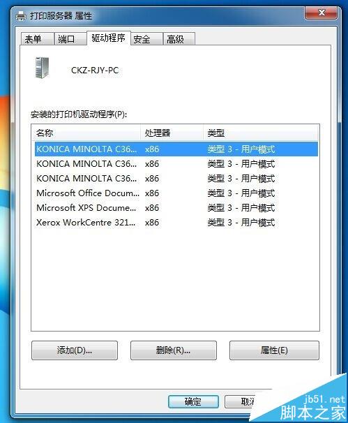 8、再打開【打印服務器 屬性】對話框,選擇對話框中的【驅(qū)動程序】,將此網(wǎng)絡(luò)打印機的驅(qū)動程序刪除掉,然后重啟電腦再重裝此網(wǎng)絡(luò)打印機的驅(qū)動,安裝好后,此臺打印機就能正常打印了。(注意:要將禁用的網(wǎng)卡啟用,網(wǎng)絡(luò)打印機才能使用)
