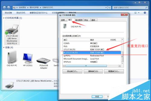 3、打開【打印服務器 屬性】,再點擊對話框下的【端口】,將連接此網(wǎng)絡(luò)打印機多余的IP地址端口刪除,如下圖所示