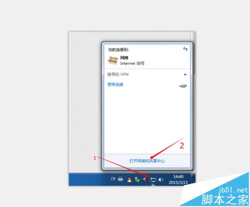 5、點擊電腦右下角的電腦圖標,選擇【打開網(wǎng)絡(luò)和共享中心】,如下所示