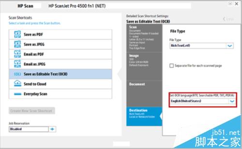 HP ScanJet Pro 4500 fn1當使用hp scan軟件掃描文檔需要OCR識別時會出現亂碼。主要是因為HP掃描軟件默認設置OCR識別軟件的語言為英文,無法自動識別非英文字符,下面我們就來看看詳細的解決辦法。