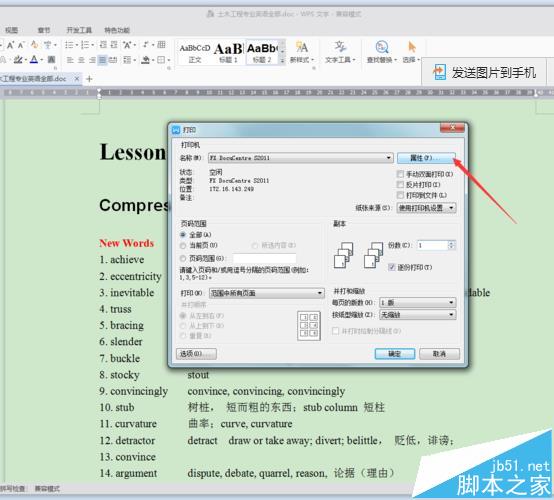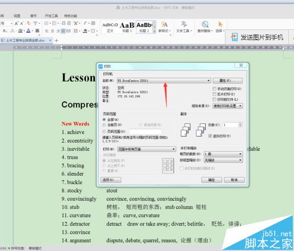 2、在彈出的打印界面選擇打印機,如圖箭頭所示。