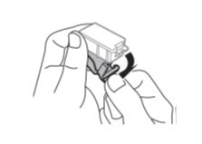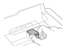 3、將新墨盒前部推入打印機字車架中,然后向下按墨盒后部,直到聽到“咔嗒”一聲,墨盒安裝到位。