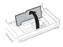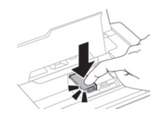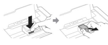 2、打開機器上蓋,按下墨盒后部卡扣,向斜后方取下空的墨盒