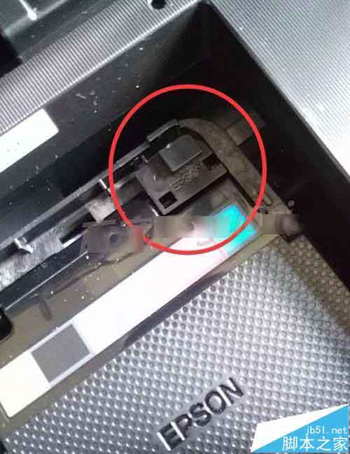 3、經(jīng)研究發(fā)現(xiàn)在墨倉的右上角有一個,墨倉蓋子的固定塊,