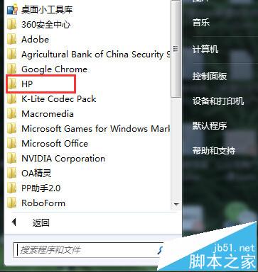 1、點擊開始,選擇所有程序,然后選擇hp文件夾,如下圖所示
