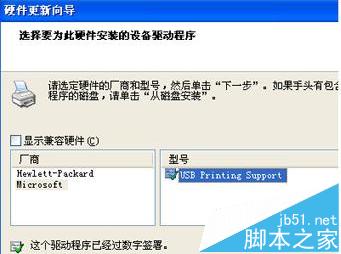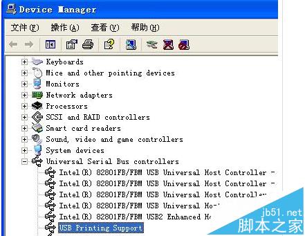 7、選擇USB Printing Support 并點擊下一步。點擊安裝程序并安裝完畢后,點擊完成。打開通用串行總線控制器,此時會在該項的下面出現USB Printing Support或者USB打印支持“端口。(如下圖所示)