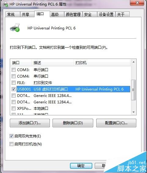 8、像第一步那樣的步驟,打開打印機的屬性對話框。選擇“端口”,重新選擇USB端口就萬事大吉了。(如下圖所示)