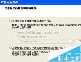 5、點擊“不要搜索”,選擇需要安裝的驅動程序 (D)。并點擊“下一步”。(如下圖所示)