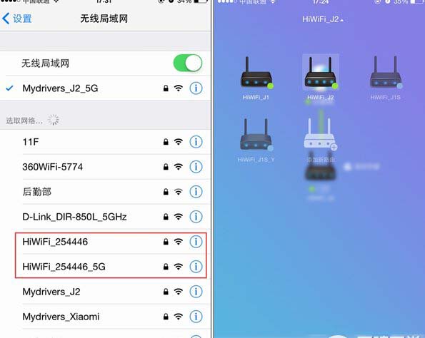 值得一提的是,極路由3包含2.4G/5G Wi-Fi可獨立設置,因此在無線網絡中,會找到兩個無線信號,如下圖所示。