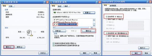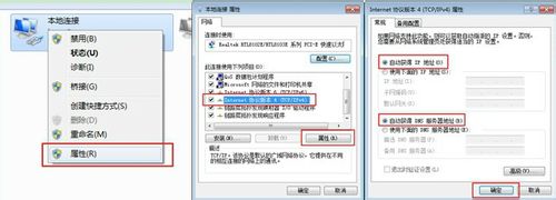 ,依次點擊"打開網絡和共享中心--更改適配器設置/管理網絡連接--右擊本地連接--屬性"(或者點擊"開始--控制面板--網絡和Internet--網絡和共享中心--更改適配器設置/管理網絡連接--右擊本地連接--屬性"),然后按照下圖配置即可。