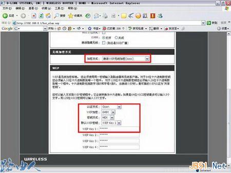 WEP加密有兩種選擇,一種是64Bit,一種是128Bit。