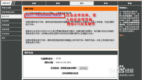 2、在路由器的管理界面中有固件升級的鏈接,但點進去后發現是臺灣的界面,而且搜索615居然沒有硬件版本為J的設備。大概硬件版本為J的只在中國大陸發行吧~所以我直接去了D-Link國內官網。(具體百度之...)